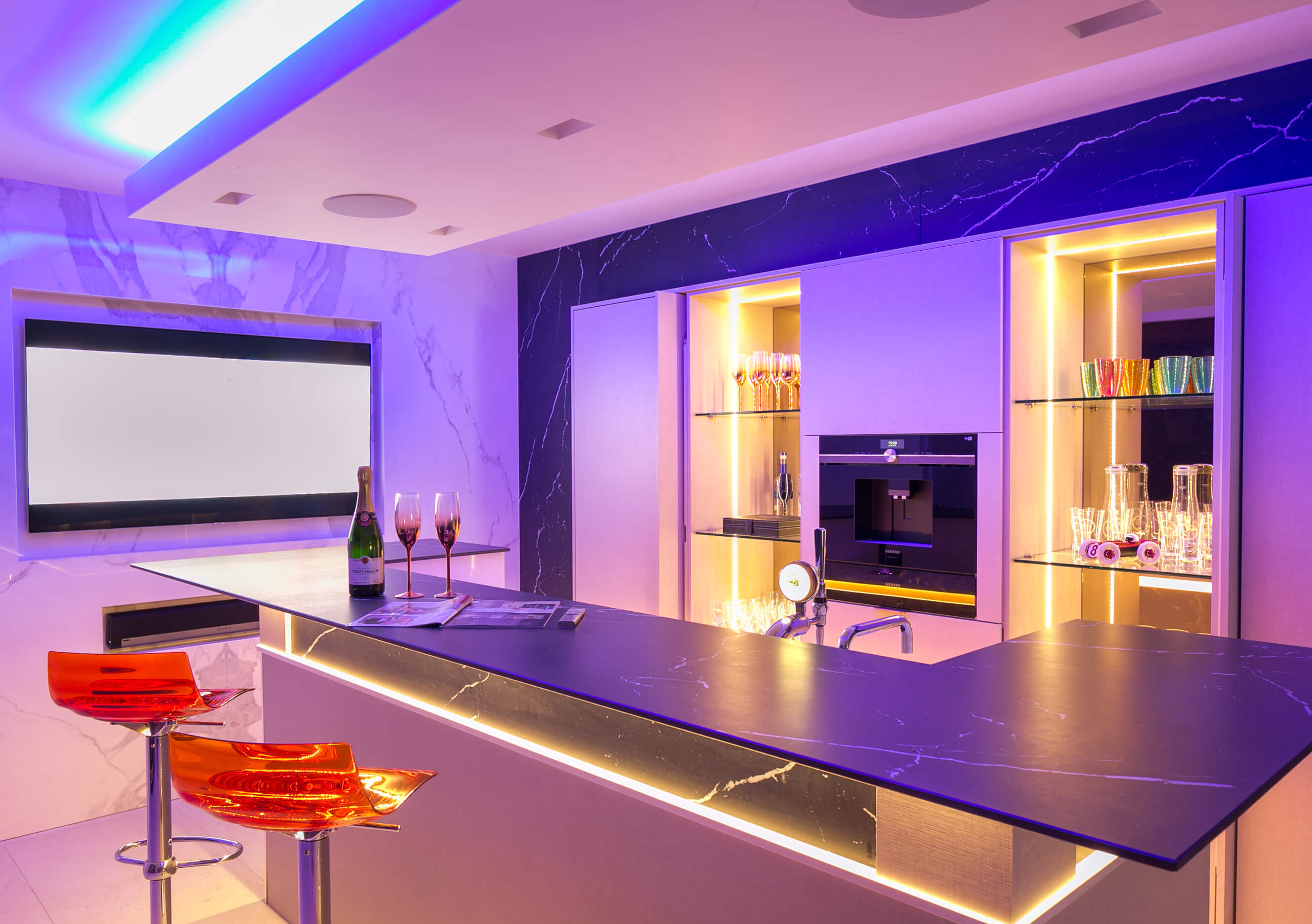 • Integrated Appliances: From wine coolers and refrigerators to ice makers and dishwashers, we can integrate top-of-the-line appliances to enhance your bar’s functionality.